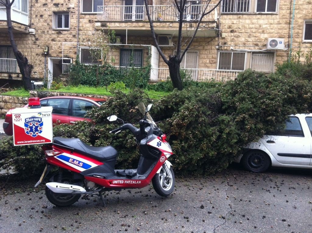 חובשי "איחוד הצלה" וכוחות כיבוי הוזעקו לפני זמן קצר לרחוב ברנר סמוך למעון ראש הממשלה בירושלים, שם נמסר על עץ שקרס על מספר רכבים עם חשש ללכודים. חובש שהגיע למקום סיפר: "למרבה הנס לא היו נפגעים בנפש, ככל הנראה עקב מזג האוויר והרוחות העזות העץ קרס, לאחר שוידאנו שאין נפגעים באירוע ביטלנו את כלל הכוחות שהיו בדרכם לאירוע".