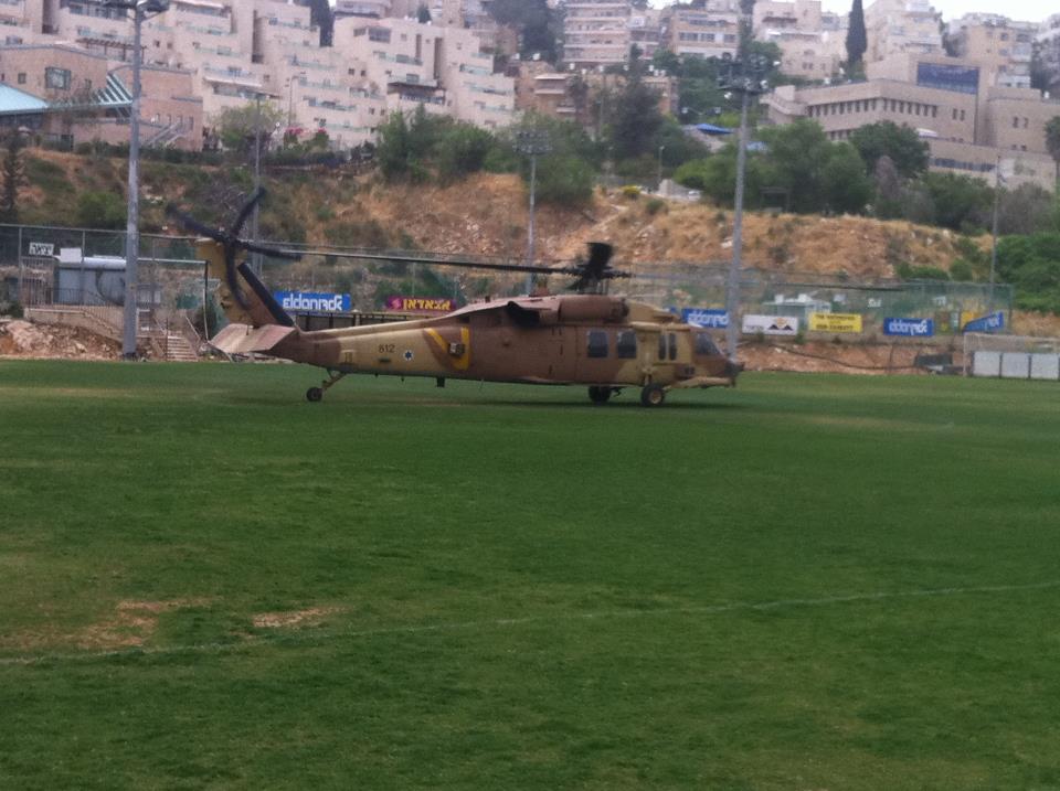 צה"ל ערך היום תרגיל צבאי באזור ירושלים ובמהלכו, מסוק נחת במגרש האימונים של הקבוצה. הפרטים על התרגיל כמובן אסורים לפרסום. השחקנים שכאמור היו ביום חופשי, החמיצו את הנחיתה. מי שהיה שם וצילם את התמונה הוא דובר הקבוצה, אסף שקד.